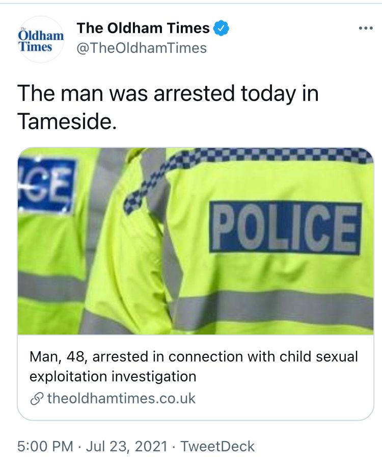 Whilst I was still detained and refused even a phone call, for some reason @AndyBurnhamGM police force shared with WILBY details of my arrest. I'll leave it to people to determine how WILBY was aware of my arrest when even members of my immediate family did not know. WILBY is claiming I was arrested as part of OPERATION HEXAGON, a joint operation between Greater Manchester Police and Oldham Council. If this is true, then it as clear evidence that Greater Manchester Police are involved in STASI like behaviour where they are arresting critics of a Council that has been exposed for corruption, election rigging and its role in the cover up of the grooming and gang rape of working class children by predominantly Pakistani, occasionally Bangladeshi, and almost exclusively Muslim men.