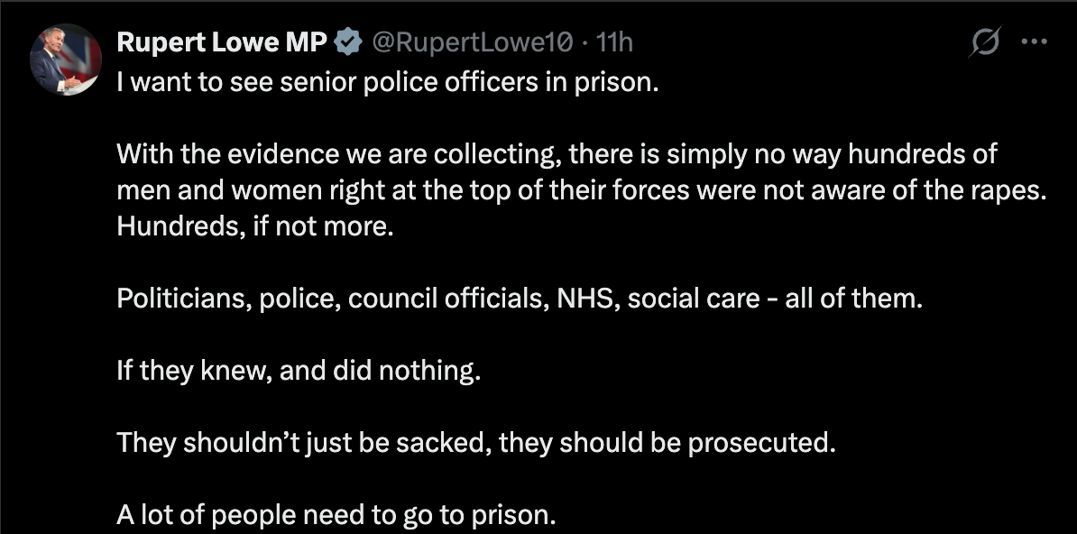 Politicians were briefed. They sat on reports that detailed exactly what was taking place in their towns. They signed off on decisions that kept rapists on the streets. Every single one of them knew. They chose to do nothing because stopping it was politically inconvenient and they gained from the gang rape of children.