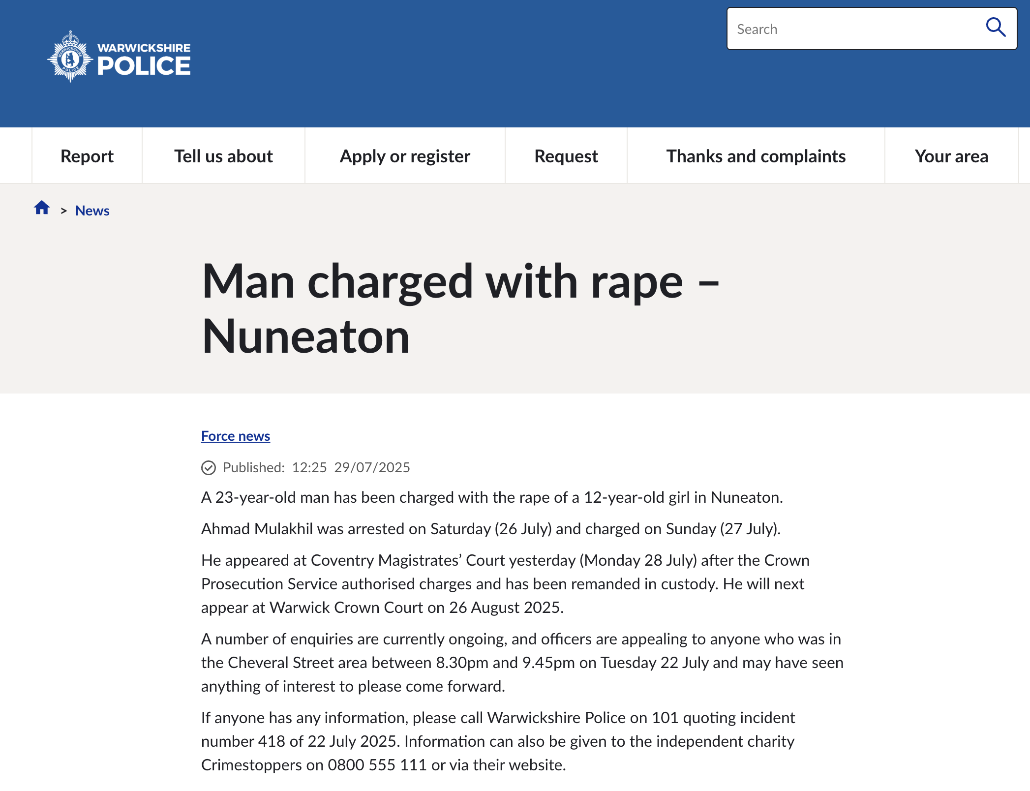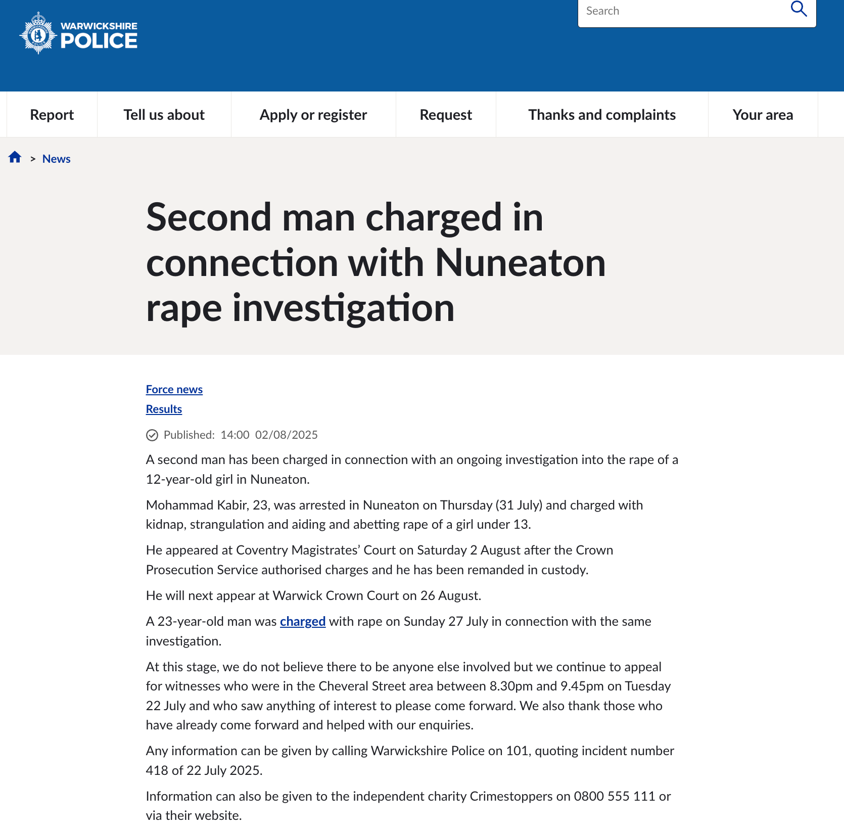 Behind the scenes, councillors were briefed. But they weren’t told to inform the public. Quite the opposite. According to sources, Warwickshire Police advised certain officials not to disclose that the suspects were asylum seekers – men housed in taxpayer-funded accommodation managed by Serco under a £1.9 billion Home Office contract.