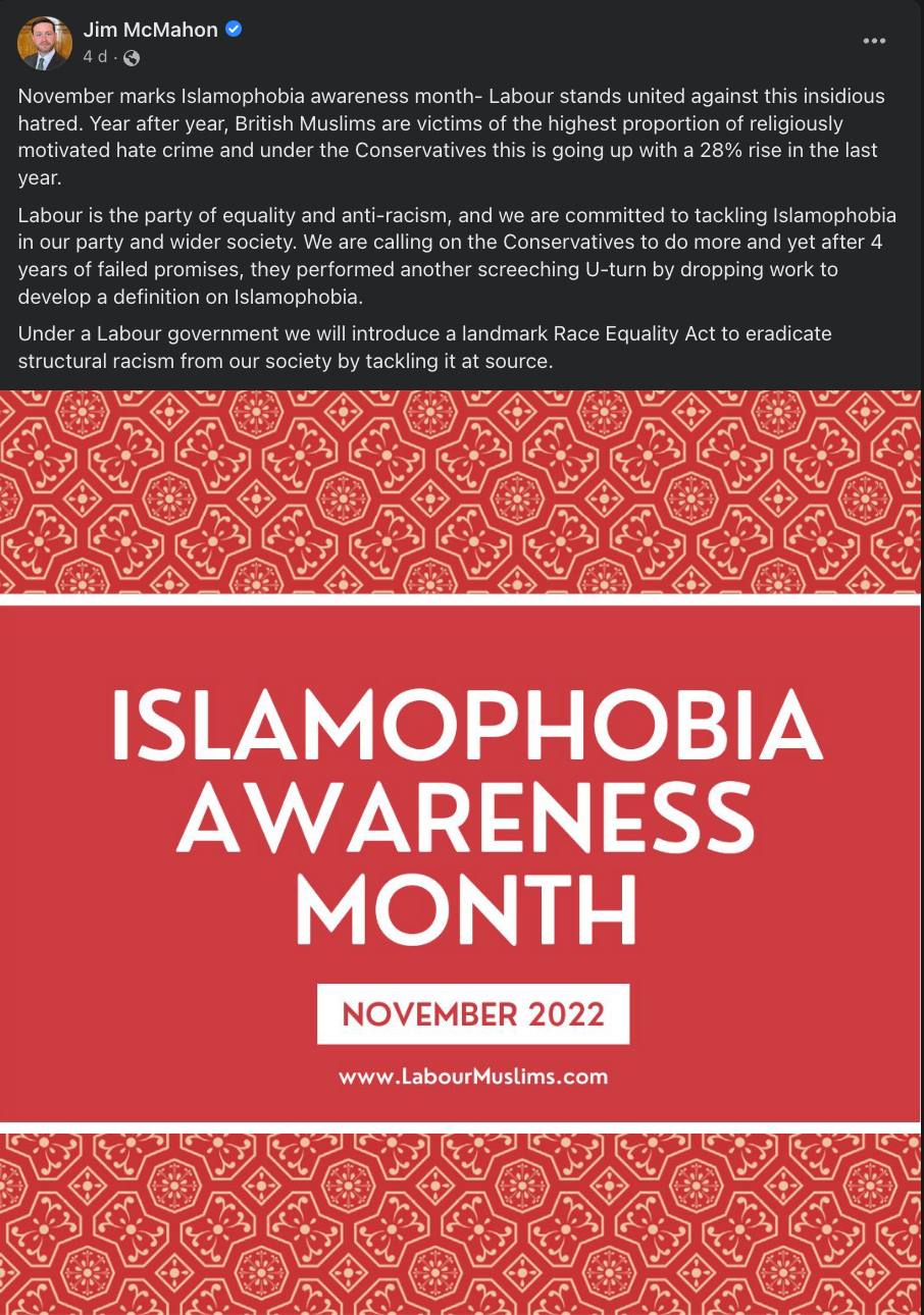 To add insult to injury, Royton & Oldham West MP, JIM McMAHON, has now taken to social media keen to share his outrage at ISLAMOPHOBIA.