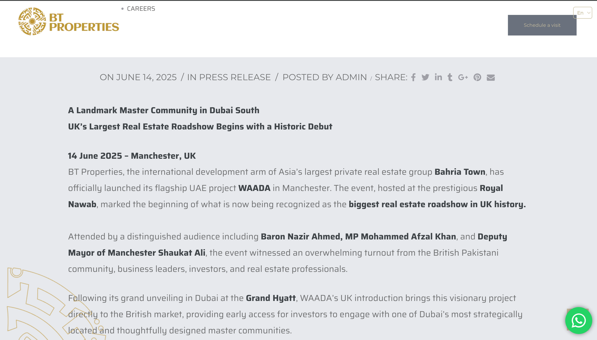 At the Hyatt he described those behind Waada as having a track record, referenced his standing as a barrister and an MP, and expressed enthusiasm for visiting Dubai to meet the key stakeholders.