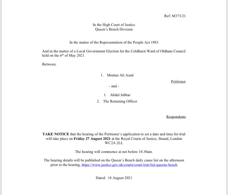 Having had sight of damning evidence, not only has what taken place inexcusable, I believe that finally this will be a watershed moment for our broken democratic system. With a date for trial in the High Court being scheduled to be set this Friday 27th August, and the Council desperately trying to find a way out, Oldham is once again going to make national news for all the wrong reasons.