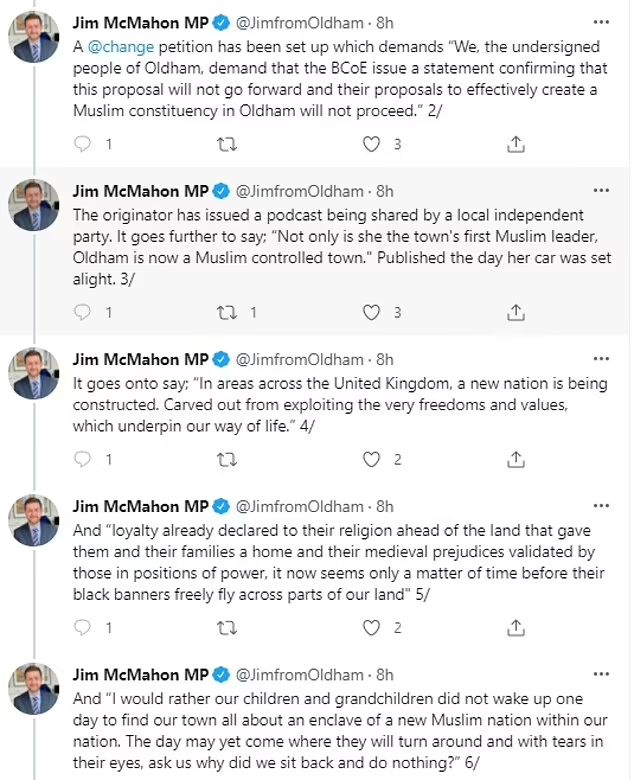 Furthermore, for those that have listened to what I had to say, the content of my podcast is a warning of the growing Islamification of the town if the proposed boundary changes were to go ahead. Oldham would effectively become a Muslim majority constituency. I object to this. Instead of encouraging violence, what I actually did was encourage people to sign a petition opposing the establishment of a politically Muslim majority constituency. This is the petition.