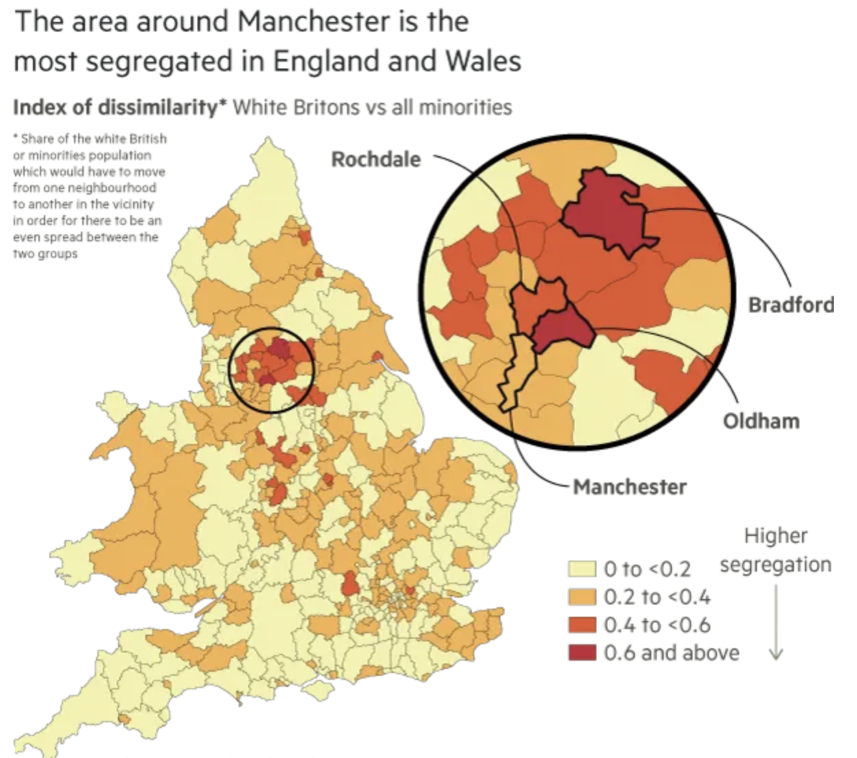 Multiple studies have confirmed that Oldham ranks highest amongst the most segregated towns in the United Kingdom. Though the usual measurements of segregated communities, where people lead parallel lives, are well known indicators of measuring poor community cohesion, there is a more dangerous indicator that demonstrates a worsening state of affairs.