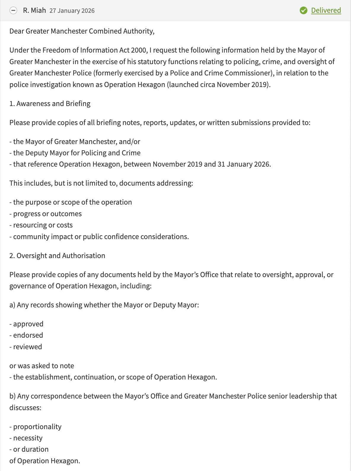 If the papers show no awareness, that is not a defence. It exposes a void at the top of Gtr Manchester Police where a long-running operation of extreme sensitivity operated without political scrutiny. That failure belongs to the office charged with oversight.